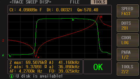 ZX70A/ZX80A系列超聲阻抗分析儀在儀器上就實現(xiàn)掃描圖形,還可以把儀器上屏幕顯示圖形和測試數(shù)據(jù)直接拷貝到U盤。同時儀器自帶電腦軟件界面,標(biāo)配版無需另行購買。